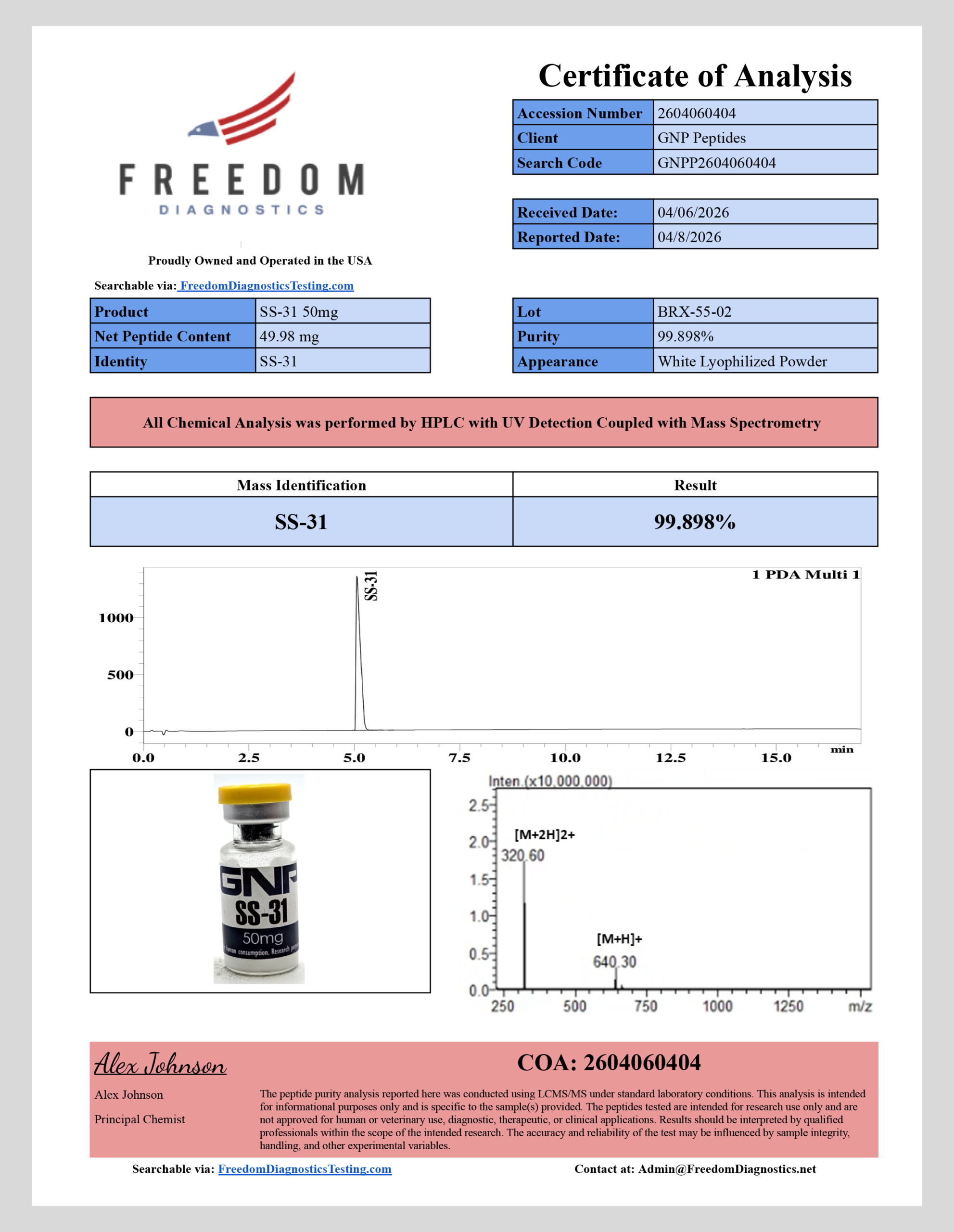 - Lab Tested >99% Purity